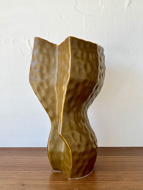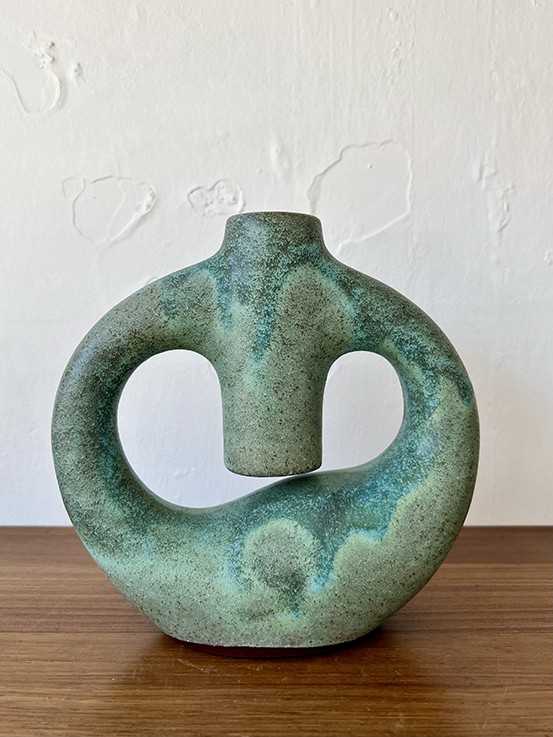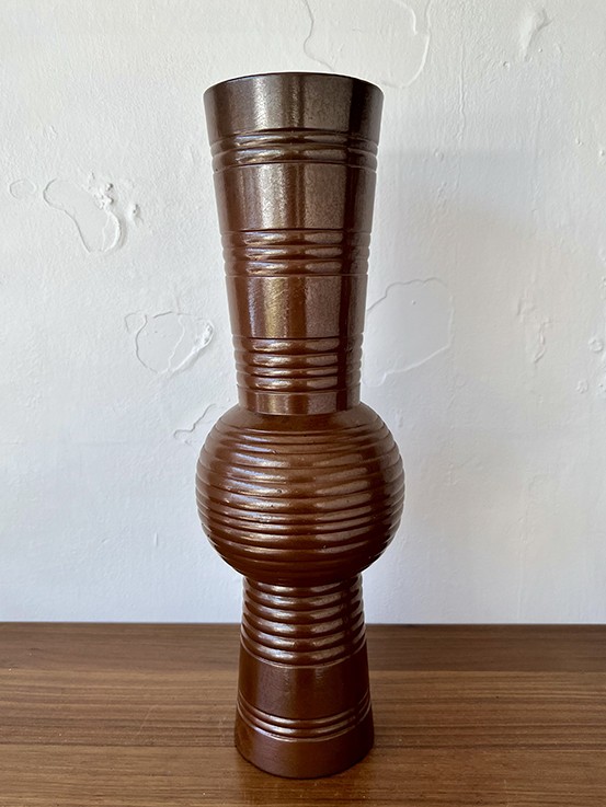 Mid-Century Australian pottery, internal pink glaze, textured surface vase. #813 $45.00 2025